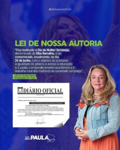 A partir de agora, a data será parte oficial do calendário do Estado, abrindo espaço para a realização de eventos culturais, iniciativas sociais e atividades de conscientização em toda a Paraíba, focadas na valorização da mulher sertaneja.