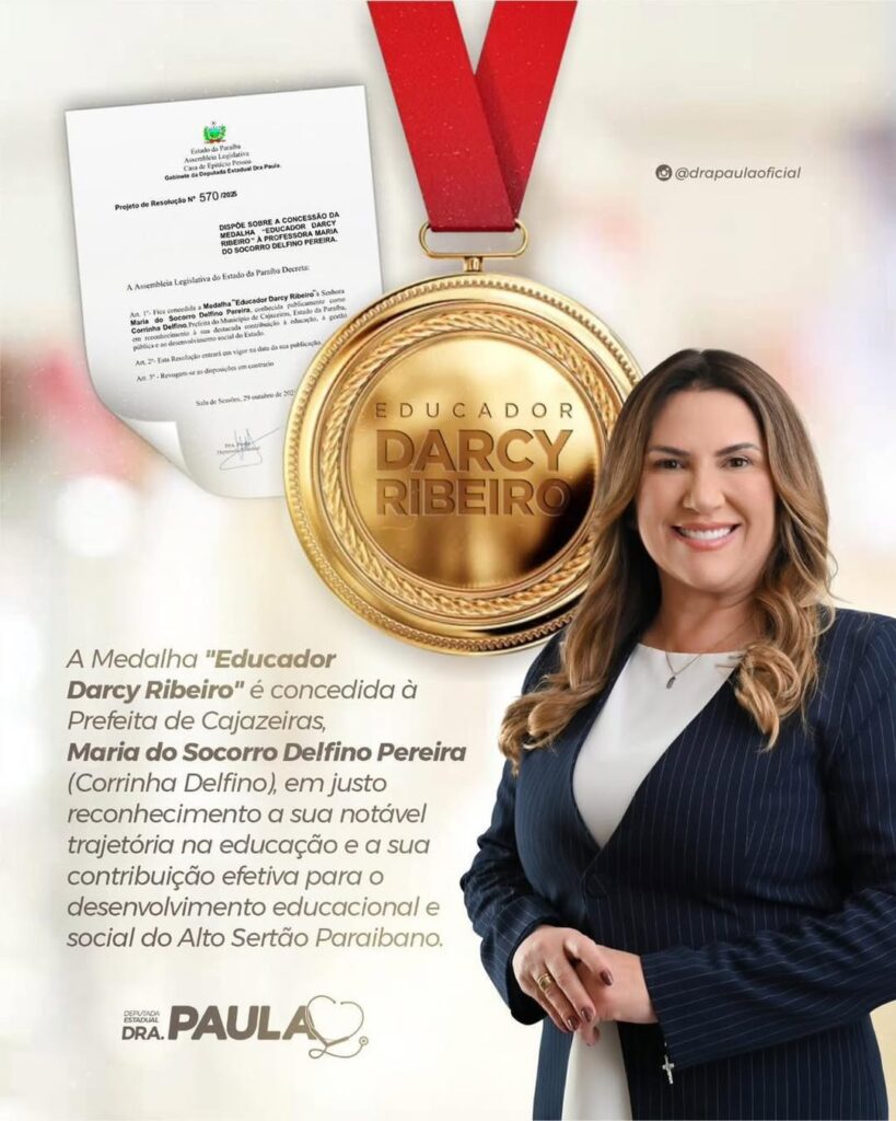 A Medalha Darcy Ribeiro é o reconhecimento ao legado e à força de uma líder que segue construindo uma educação mais justa, inclusiva e qualificada para o Alto Sertão paraibano.
